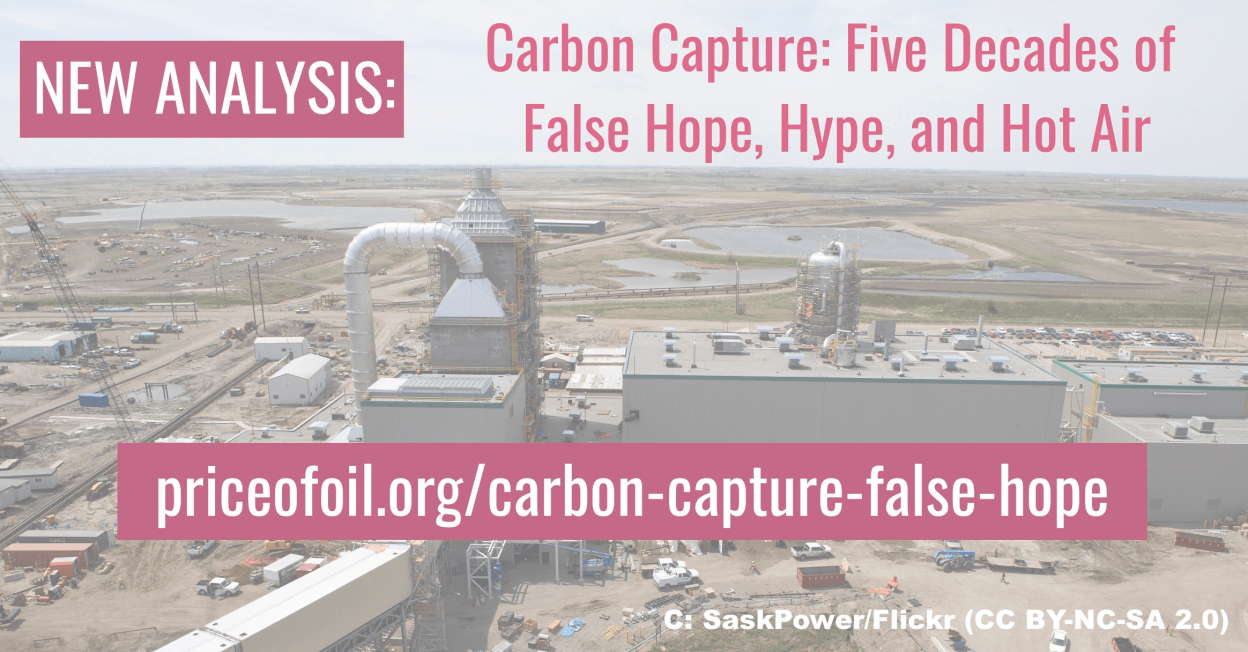 Carbon Capture: Five Decades of False Hope, Hype, and Hot Air,” Andy Rowell and Lorne Stockman, Oil Change International, June 2021.