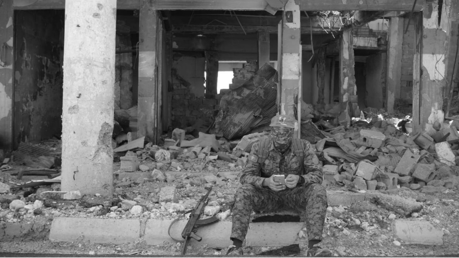 En esos días de combates descarnados en Manbij, cuesta creer que existieron momentos de ternura. La guerra, la muerte y la violencia parecen arrasarlo todo, pero la fuerza de la vida se abre paso con una tenacidad desesperada. Kemal conoce muy bien sobre esto y lo cuenta: “Recuerdo a un grupo de civiles que evacuábamos mientras vigilábamos el perímetro. R