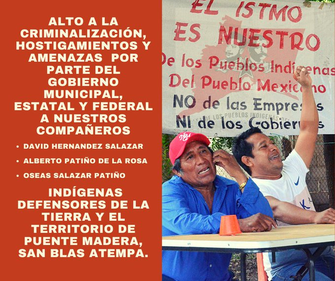 The Community Assembly of Puente Madera calls on the individuals and collectives, Indigenous, social, student, teacher’s, women’s, and dissident organizations of Oaxaca, Mexico, and the world, to show solidarity with our struggle in defense of territory, against the industrialization brought by the Interoceanic Corridor Megaproject.