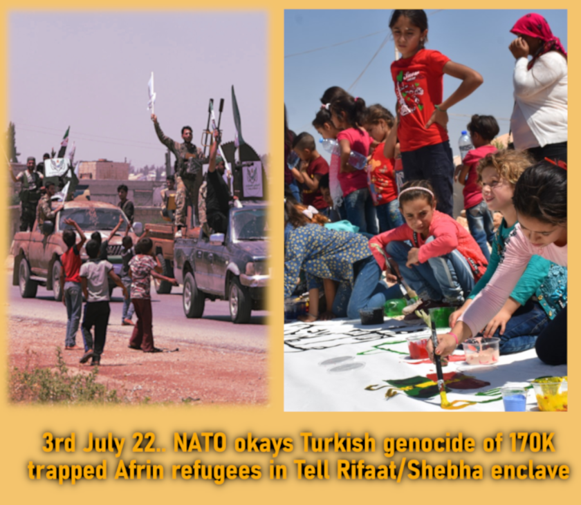 Turkish genocide approved by depraved NATO with okay to attack 170,000 Kurdish refugees in Tal Rifaat/Shebha enclave..