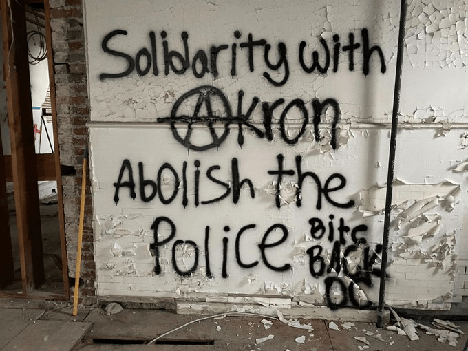 Solidarity actions with the ongoing protests in Akron, Ohio have take place across the US, from banner drops to militant street marches in Pittsburgh, PA, Sacramento, CA, Bronx, NY, Washington DC, and Portland, OR.