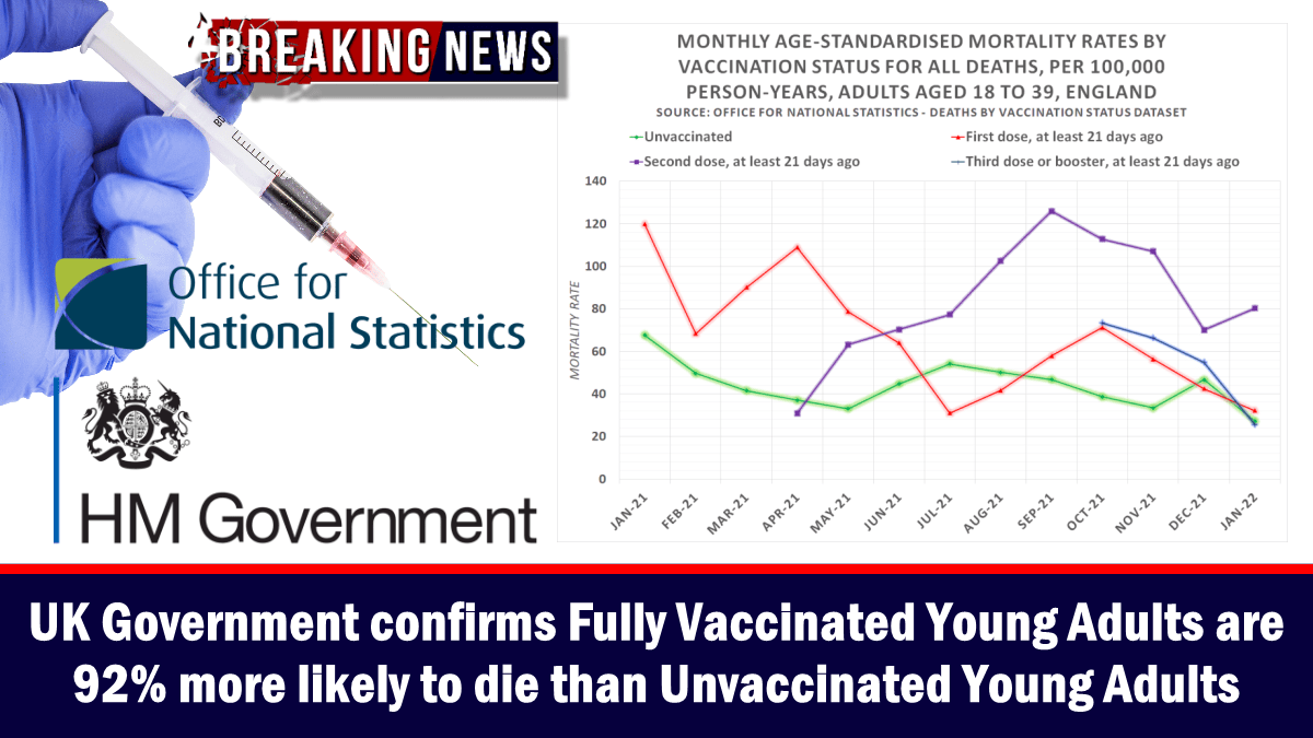 UK Government confirms Fully Vaccinated Young Adults are 92% more likely to die than Unvaccinated Young AdultsByThe Exposéon•( 8 Comments )