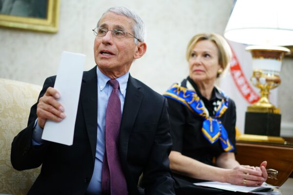 Dr. Anthony Fauci, left, director of the National Institute of Allergy and Infectious Diseases speaks next to response coordinator for White House Coronavirus Task Force Dr. Deborah Birx. Fauci and Birx also made statements showing their “open” minds regarding a laboratory leak and Birx reversed previous COVID-19 narratives that asserted the vaccine prevented disease acquisition and transmission on Fox News J