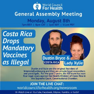 Mandatory vaccines illegal in Costa Rica (https://t.me/covidpositivenews/1174) (interview details . Watch here (https://t.me/covidpositivenews/1213)).Costa Rica’s President speaks out against vaccine mandates (here (https://t.me/covidpositivenews/1214)).