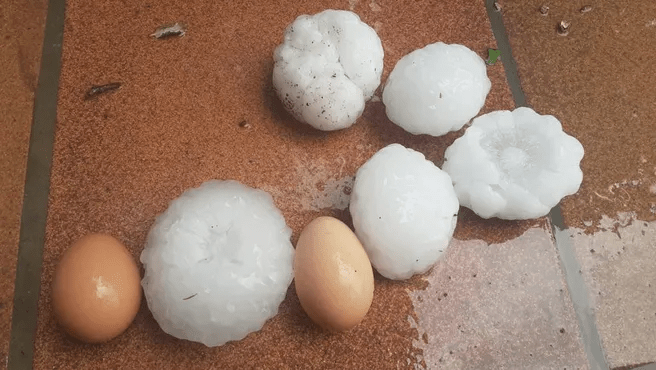 The stone has caused numerous damages, with broken branches, damage to roofs, broken car windows and dozens of dead birds.