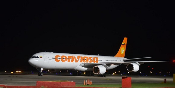 El vuelo A340-600 de la aerolínea Conviasa incluye bomberos y especialistas de la empresa estatal Petróleos de Venezuela (Pdvsa).