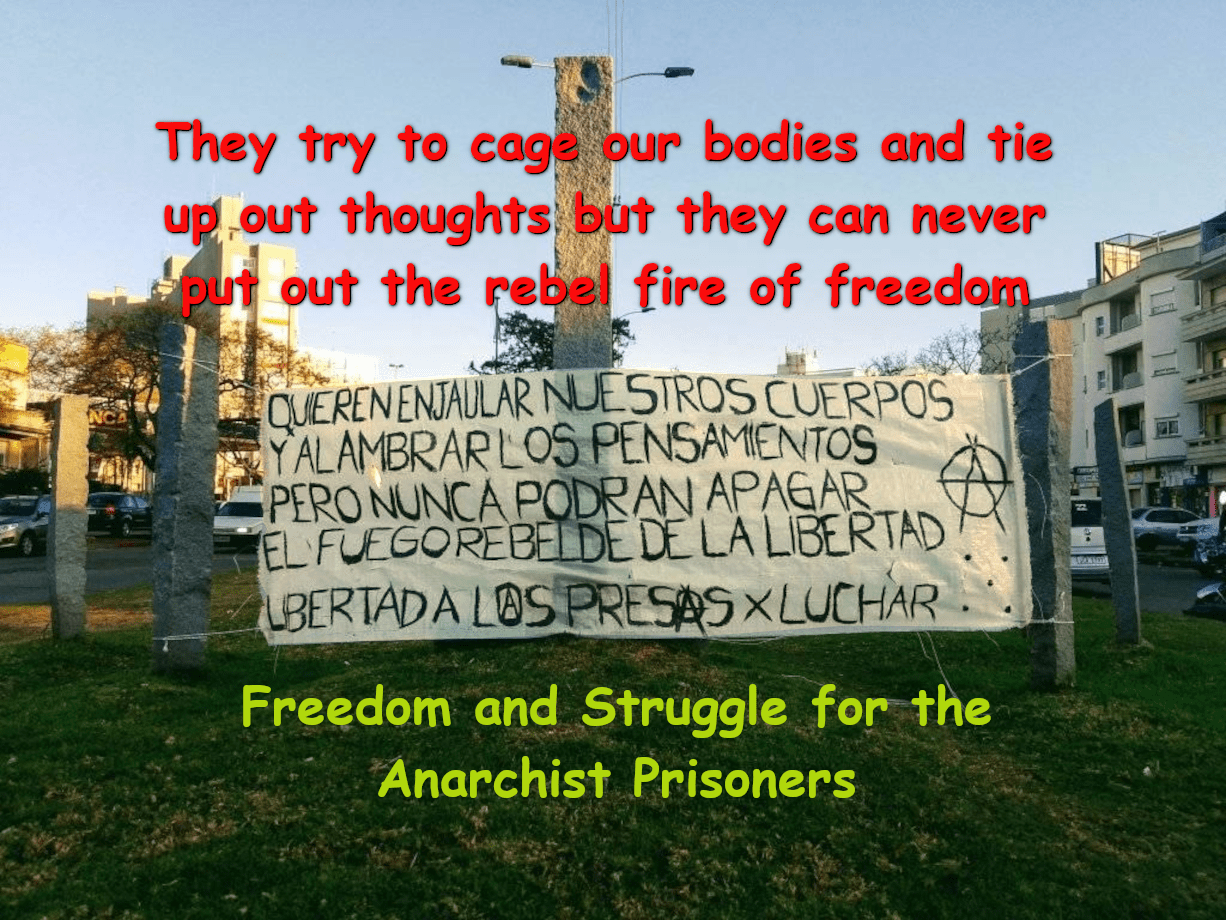 Expression of Solidarity and Support for Anarchist Prisoners By the anarchist news collective From Anarquía English translation by Anarchist News. via thefreeonline Until all Prisons are Empty… Solidarity with the (female and male) Anarchist Prisoners. Share: share here Click to share on Mastodon (Opens in new window) Mastodon Click to share on LinkedIn (Opens in new window) LinkedIn Click to share on Reddit (Opens in new window) Reddit Click to share on Tumblr (Opens in new window) Tumblr Click to share on Pinterest (Opens in new window) Pinterest Click to share on Pocket (Opens in new window) Pocket Click to email a link to a friend (Opens in new window) Email Click to share on X (Opens in new window) X Click to share on Telegram (Opens in new window) Telegram Click to share on Facebook (Opens in new window) Facebook Click to share on instagram (Opens in new window) instagram Like Loading... Related Author: thefreeonline The Free is a book and a blog. Download free E/book ...”the most detailed fictional treatment of the movement from a world recognizably like our own to an anarchist society that I have read... View all posts by thefreeonline