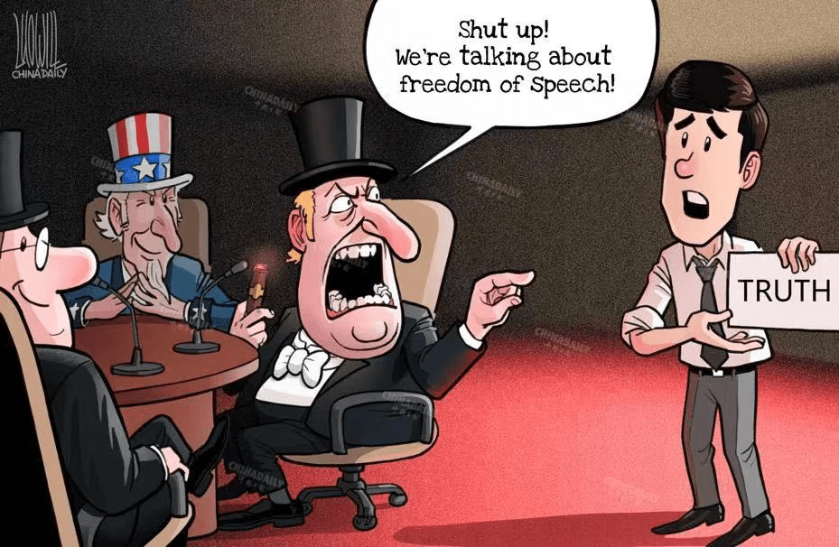 In reality, it is the U.S. itself which is stripping the country of its vaunted “four freedoms” and denying other countries, particularly in the Third World, of their independent paths to development and freedom.