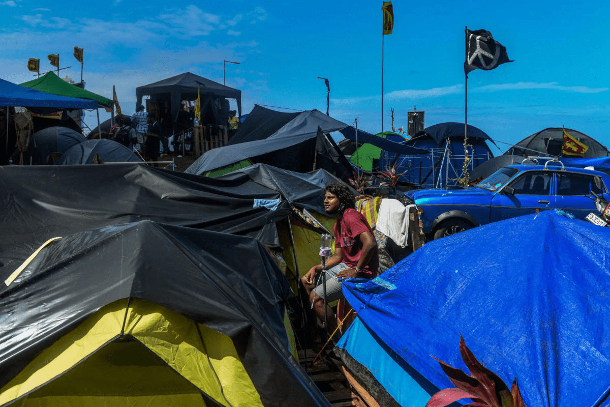 Gama is Sinhala for “village”; the Tamil equivalent is Gramam. Starting on April 9, protesters established a permanent occupation at Galle Face, the half-kilometer-long oceanside park in downtown Colombo, the capital of Sri Lanka.