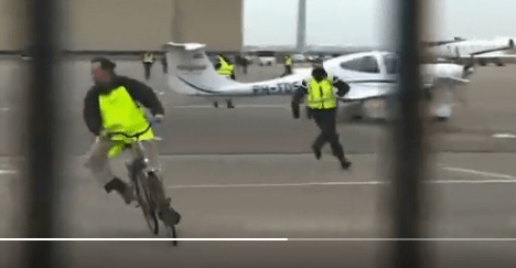 More than 100 protesters, wearing white suits, entered an area where private jets are kept on Saturday as part of a day of demonstrations in and around the airport organised by environmental groups.