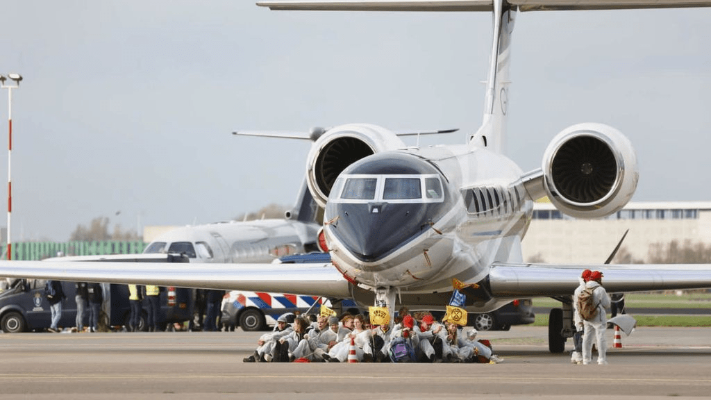 Climate activists arrested after blocking private jets in Amsterdam airport