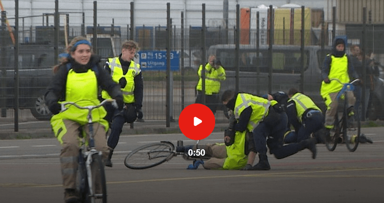 Sitdown protests are part of a day of demonstrations in and around Schiphol airportDutch police arrest over 200 climate activists who blocked Amsterdam’s Schiphol airport – video