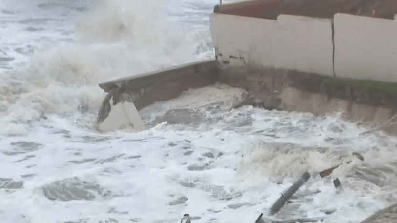 Seawall at Daytona Beach crumbles into ocean due to powerful waves from Tropical Storm Nicole