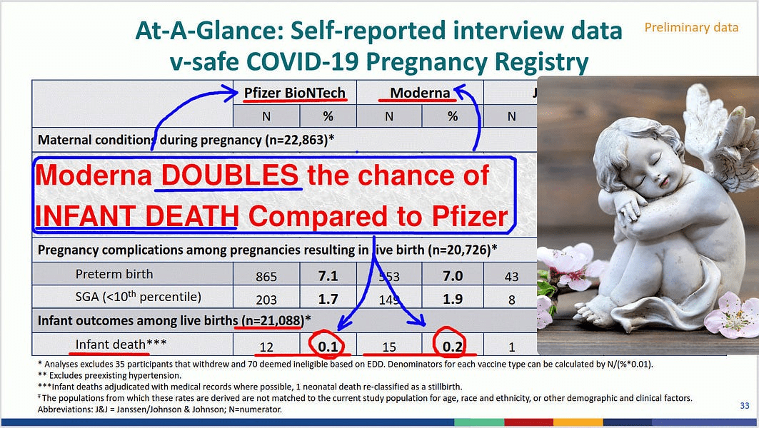 It took a mathematician/businessman, for example, to point out evidence of a dose-response relationship between the jabs and infant deaths, with significantly more deaths reported when the higher-dose Moderna jab is used during pregnancy than with the Pfizer product.