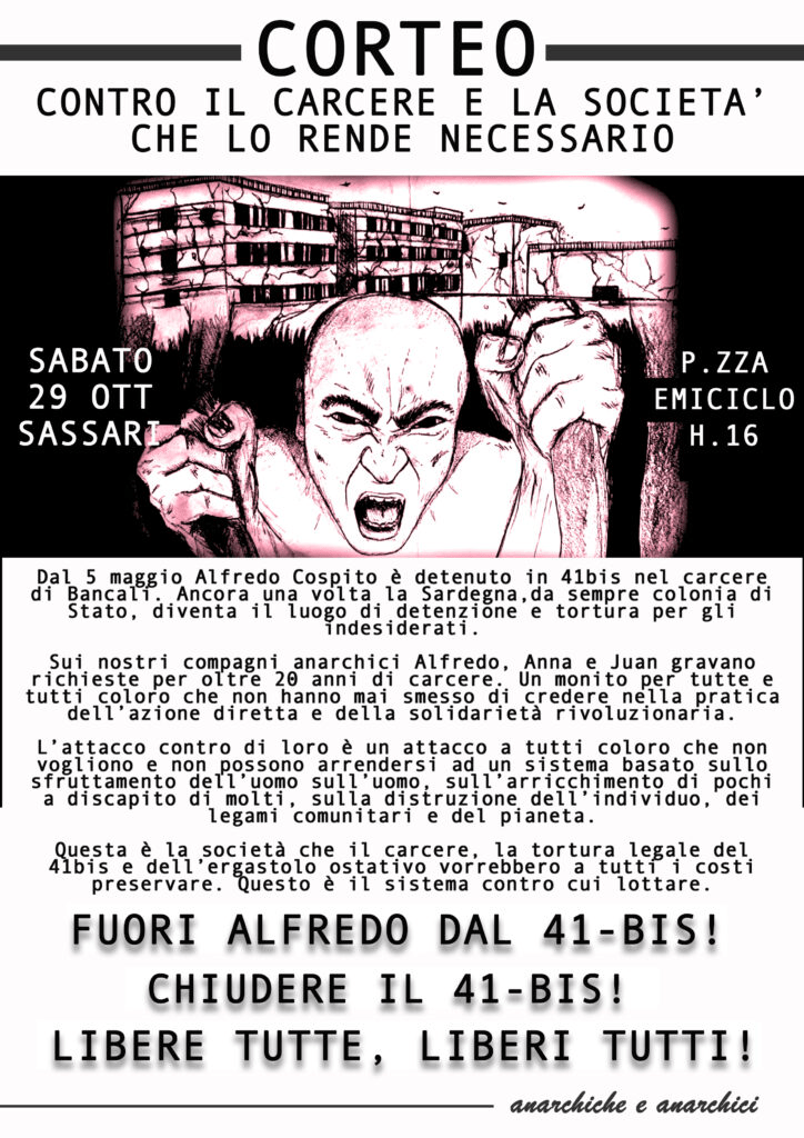 If anything happens to Alfredo Cospito any individual with critical thinking will understand who the principals and executors of his physical annihilation are, having failed to carry out the political and ideal one.