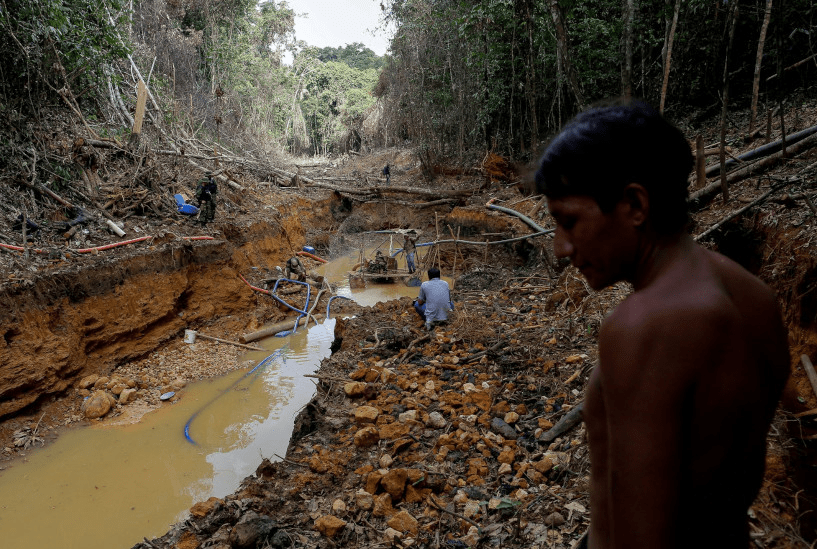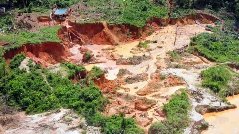 The gold mining causes persistent water poisoning due to the mercury and other chemicals used.