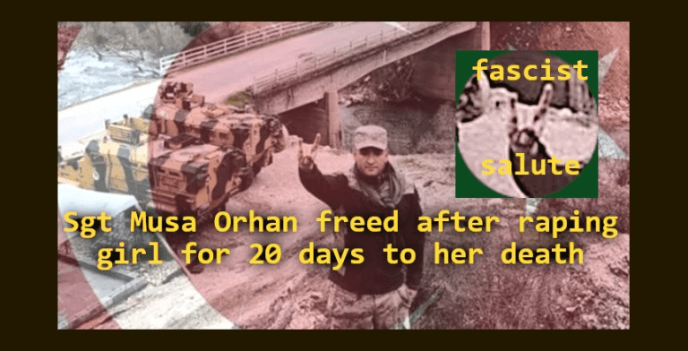 ”Reminding the public that sergeant Musa Orhan abducted and raped İpek Er for 20 days and drove her into suicide in Batman province. Social media users have also denounced the fact that Musa Orhan is again free and criticized the policy of impunity in the country”.. Jin News.