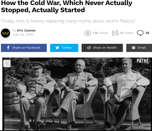 However, today — and ever since 25 July 1945 — the world’s greatest threat to world peace has been, and is, the empire that was started by U.S. President Harry S. Truman under the influence of his personal hero and immediate successor Dwight Eisenhower, for America ultimately to conquer the world (believing that if America wouldn’t then the Soviet Union would).