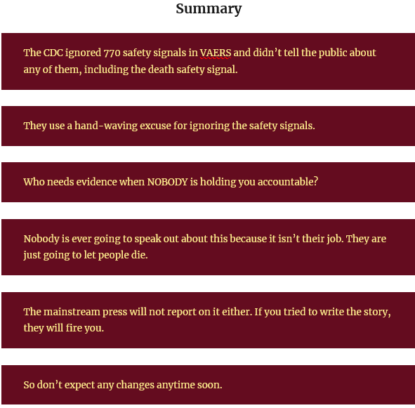 The CDC is DELIBERATELY ignoring all the safety signals generated in the official safety monitoring system (VAERS)