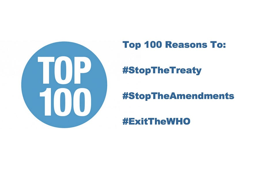 ‘The Top 100 REASONS to #StopTheTreaty, #StopTheAmendments, and #ExitTheWHO’.