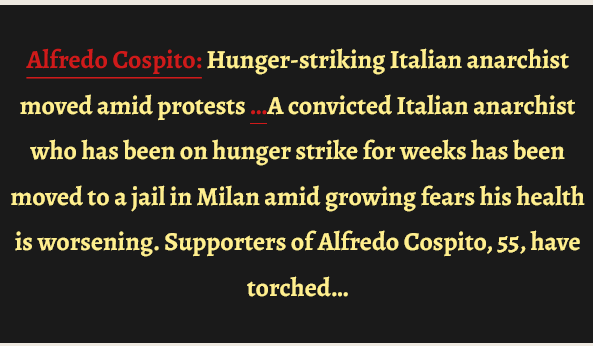 Jailed anarchist’s hunger strike exposes Italy’s harsh isolation regime