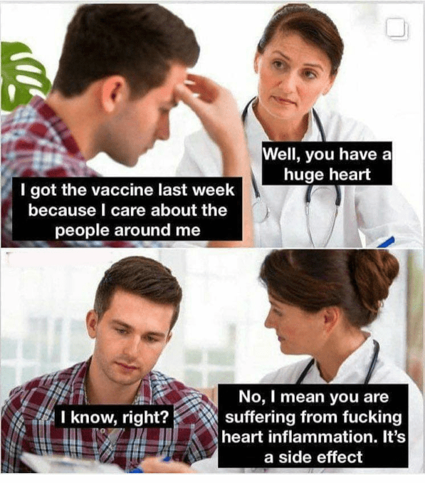 A rate of 3.5% of teenage males (which is 1 in every 29 teenage males) being diagnosed with myocarditis post-vaccine is a disaster. If the vaccine isn’t causing this, what is? This cannot be simply “bad luck” that these kids all developed spontaneous myocarditis; the rate is too high and the timing is suspicious.