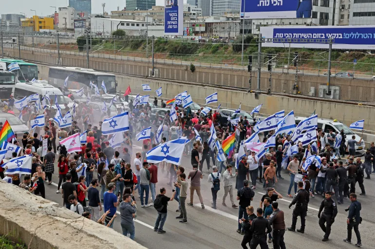 Israelis have taken to the streets en masse in protest against the government’s proposed changes to the judicial system, blocking roadways across the country and intensifying a months-long campaign decrying the move.
