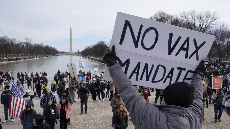 Protesters gather for a rally against Covid-19 vaccine mandates in front of the Lincoln Memorial in Washington, DC, January 23, 2022 © AP / Patrick Semansky