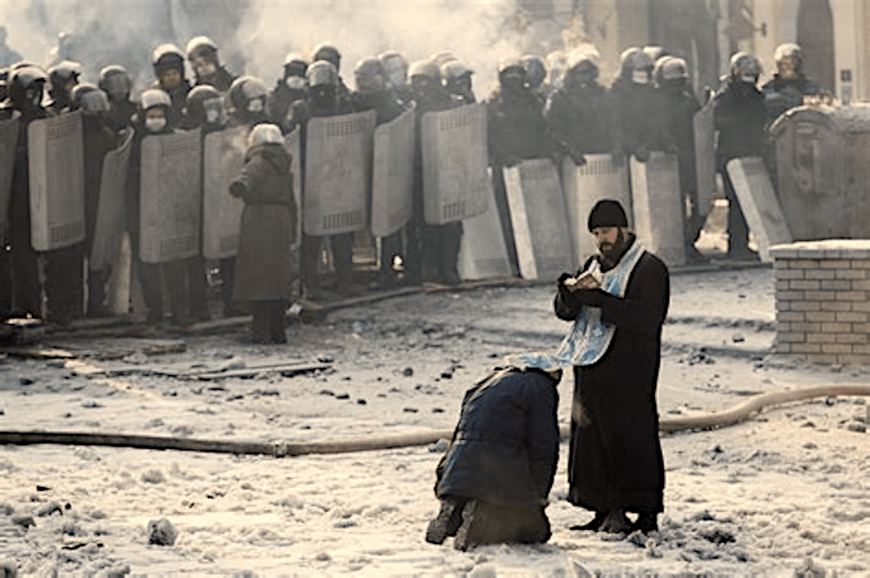 “If you believe in God, I beg you, leave the church, let me bury my son!” a grief-stricken woman screams, kneeling in the snow in front of the priest. He is surrounded by Ukrainian officials and territorial defense fighters who are there to help him seize the church. see also.. Ukraine ‘nationalists’ Banning and Closing down biggest Churches in nazi-style religious Purge
