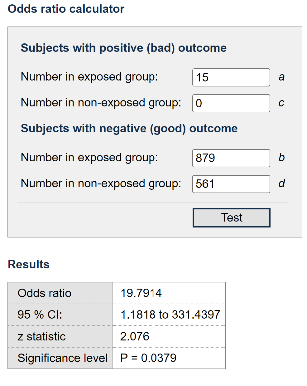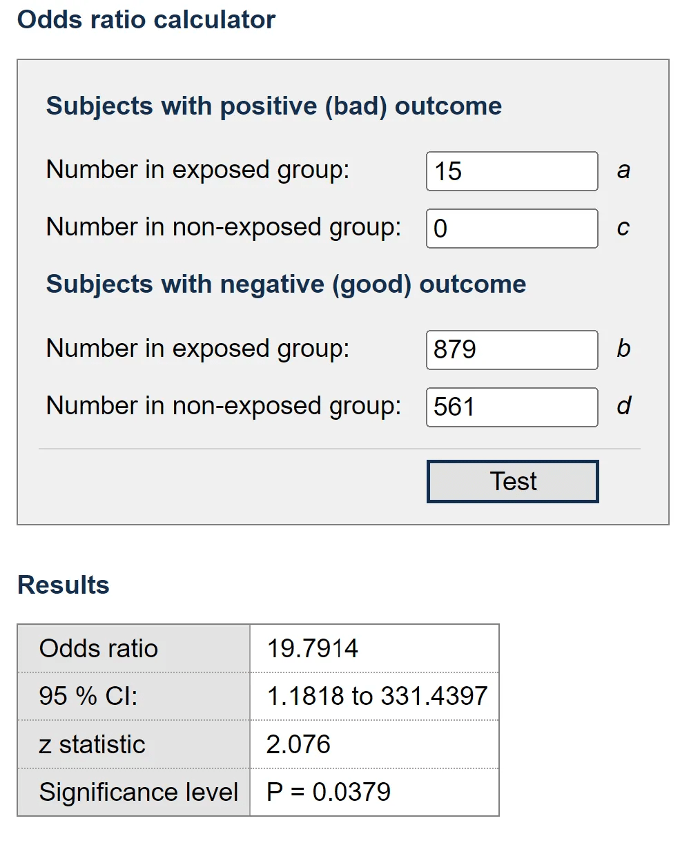 - Control group: 82 odds ratio for autism in the vaccinated vs. unvaccinated. “For those with zero exposures to post-birth vaccines, pre-birth vaccines, or the K shot, the total rate of autism in the entire CGS is 0% (0 of 1,024)” Doing an OR calculation relative to my survey of 10,000 children: OR=82 CI:5.1197 to 1315 z statistic: 3.114 Significance level. P = 0.0018.