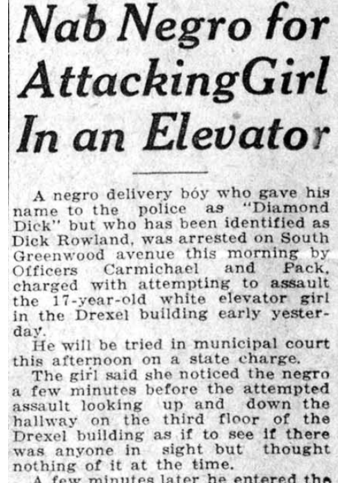 An entire thriving community populated by Black people was destroyed by white people because a Black man may have accidentally stepped on a white woman’s toes in an elevator!