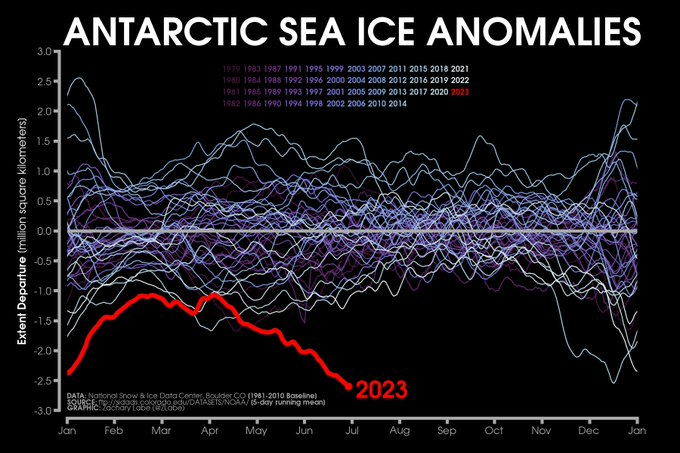 But at the end of June, getting into the heart of the Southern Hemisphere winter, an area of ice about the size of Texas and Alaska, nearly 1 million square miles, was missing. As the Southern Hemisphere’s winter set in, the sea ice grew more slowly than ever observed in the satellite era.