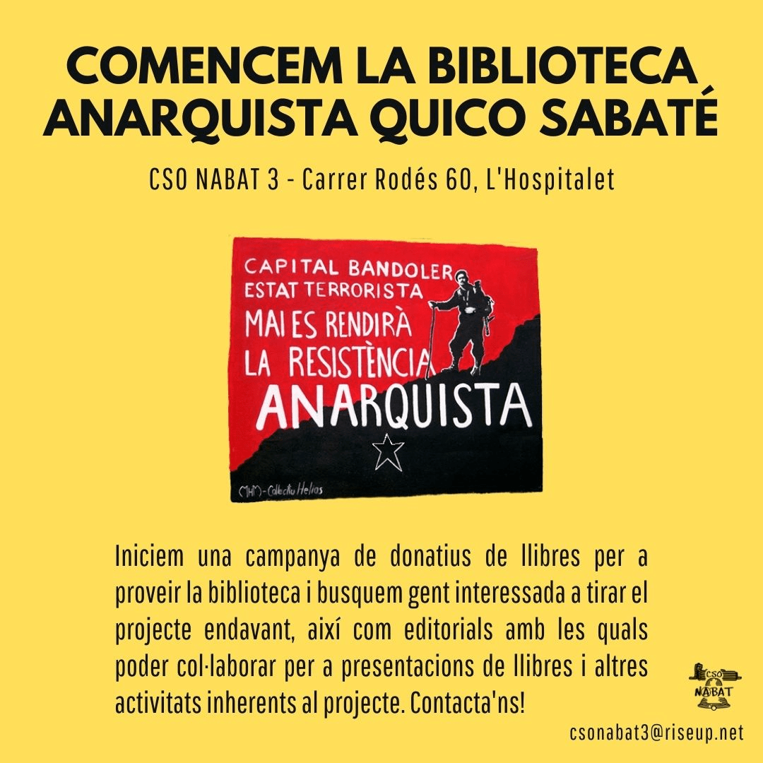 CSO Nabat 3 (former Fàbrica Albert Germans) was threatened with “administrative eviction” by the Hospitalet de Llobregat Council (Socialist Party PSC).”CSO Nabat 3 (formerly the Albert Germans Factory)