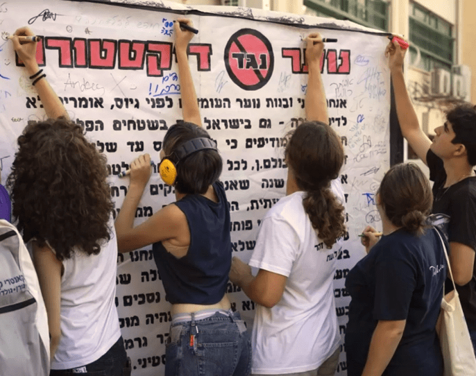 In a statement released on Sunday at the Herzliya Hebrew Gymnasium high school in central Tel Aviv, Youth Against Dictatorship also explicitly tied their cause to opposition to the oppression of the Palestinians.