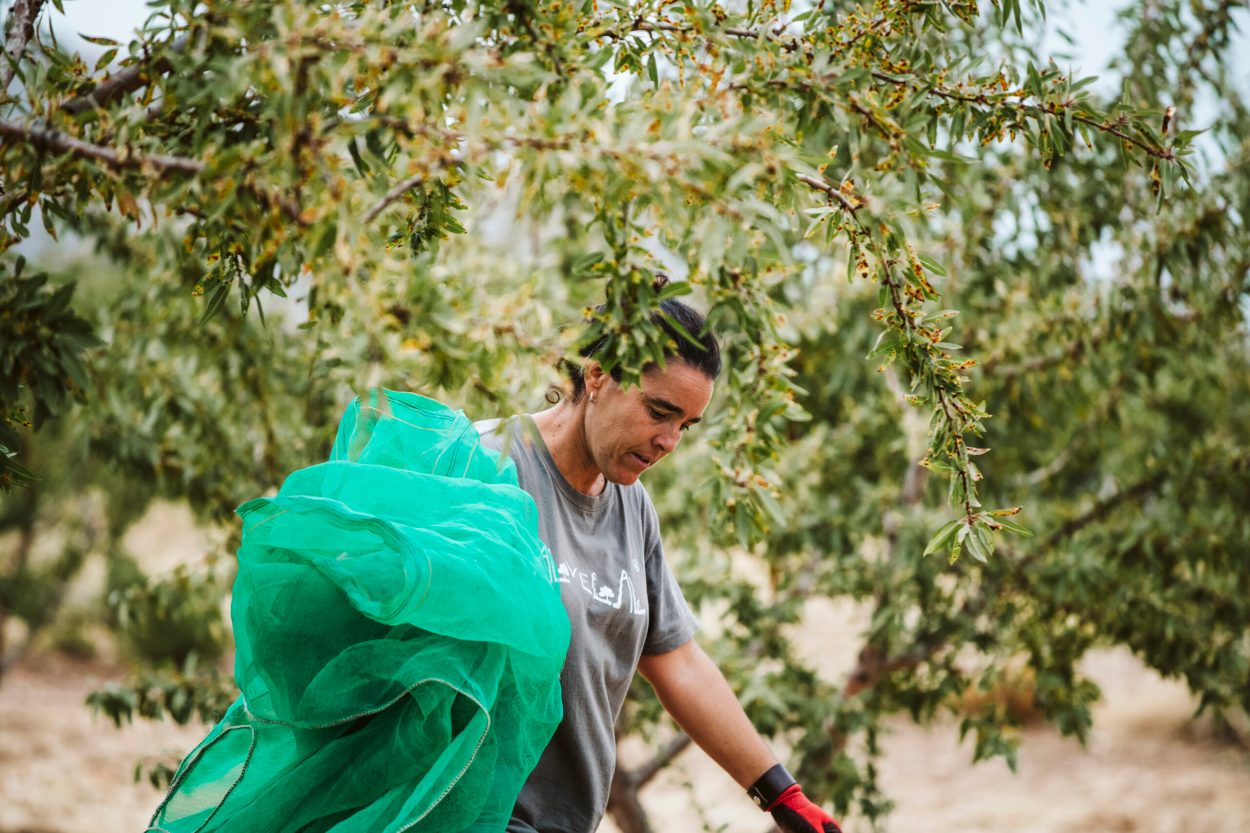 To make that connection, Sánchez regularly organizes tourist trips so visitors can witness her farming practices firsthand. “I explain how crucial it is to choose one product over another. When I demonstrate the regenerative techniques I use in the soil, they’re willing to pay 3.50 euros [$3.70, for sustainably produced almonds,] instead of 2.50 [$2.60] for a [conventional] packet of almonds. When they understand the impact and how many people can make a living without leaving their homeland, they’re willing to pay the extra euro.”