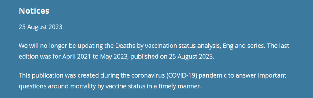 SECRETS: UK Gov. to stop publishing ‘Deaths by C-19 Vaccination Status’ because the Data has shown for 2.5 years that the COVID Vaccine reduces Lifespan significantly & the Vaccinated account for over 9 in 10 COVID Deaths
