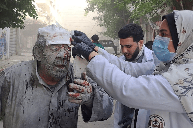 A Palestinian man receives treatment after an Israeli strike near the Kamal Adwan hospital in Beit Lahiya in the northern Gaza Strip on November 22, 2023 [File: Mohammad Ahmad/AFP]
