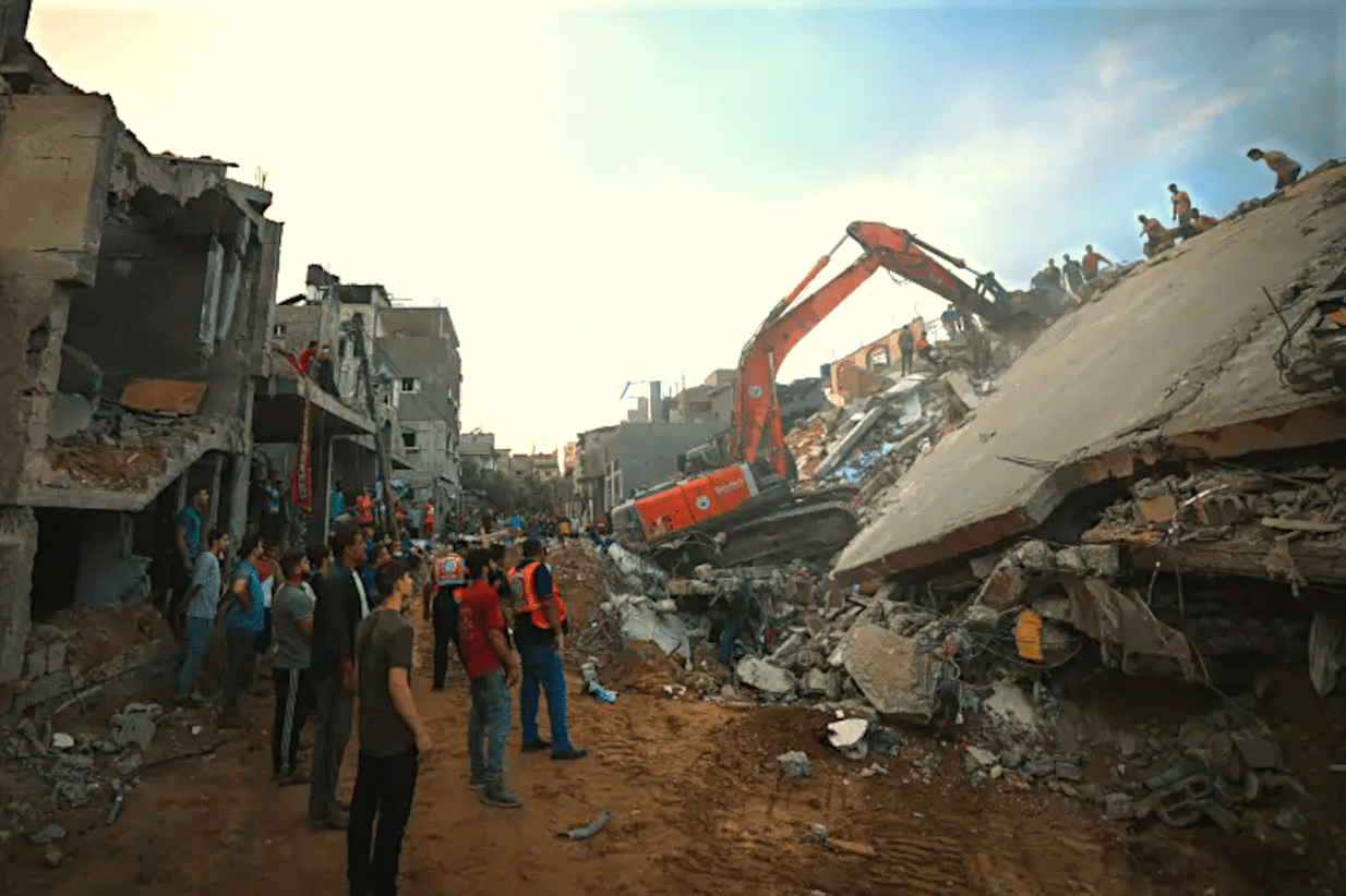 Palestinians search for survivors in the rubble of a building in the Nuseirat refugee camp, in the central Gaza Strip, on October 31, 2023, amid relentless Israeli bombardment [Mahmud Hams/AFP]