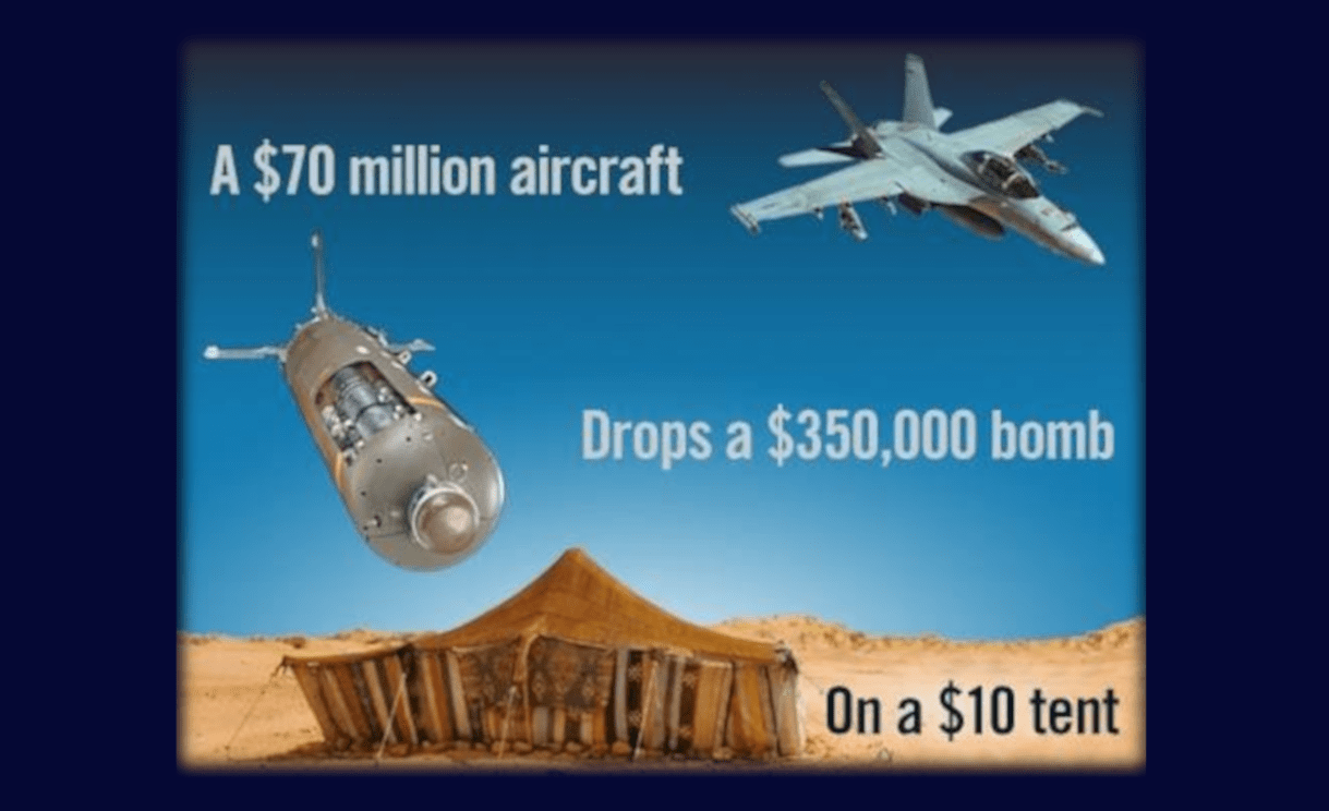 If they want to literally explode their money, let them. The US can’t reload its missile batteries at sea, so after a little battering, they have to just leave. Thus one of the poorest countries in the world has defeated the world’s richest navy, by exploiting its profligacy.