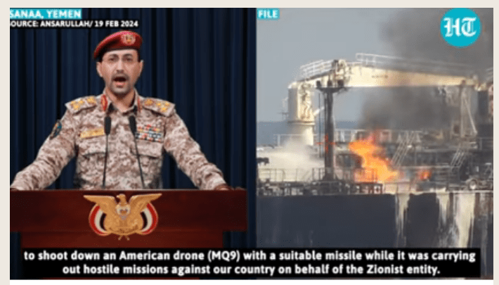 “The missile force and the naval force of the Yemeni Armed Forces carried out a joint military operation targeting the American aircraft carrier ‘Eisenhower’ in the Red Sea,” said Yahya Saree in a televised statement.