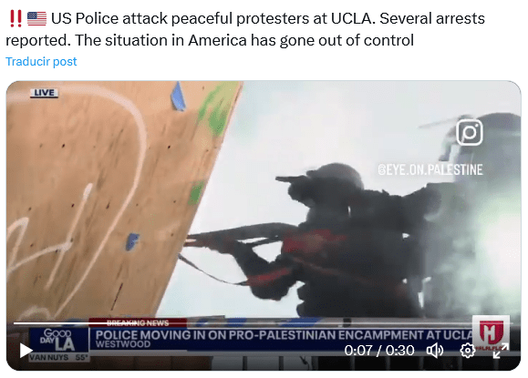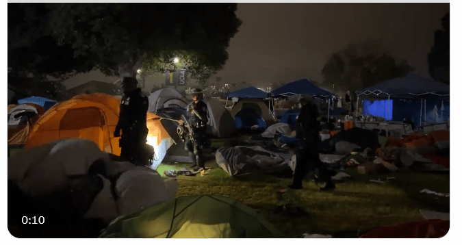 UCLA BREAKING 🚨 : CHP RIOT POLICE HAVE BROKEN THROUGH, POLICE HAVE BREACHED THE ENCAMPMENT. PEOPLE BEING DETAINED. pic.twitter.com/uxcAOReRp5