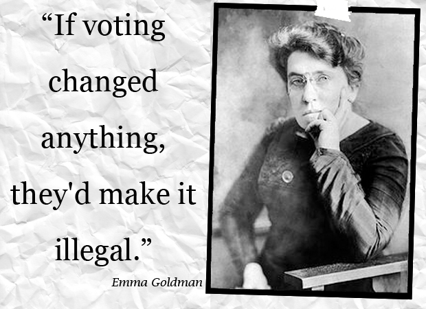 They want our participation in this staged event – it looks good for them. It encourages them and allows them to claim their greed is in our name. Look at the last time you used your X, what did it change? We feel sure if they thought it could really change anything they would make it illegal.