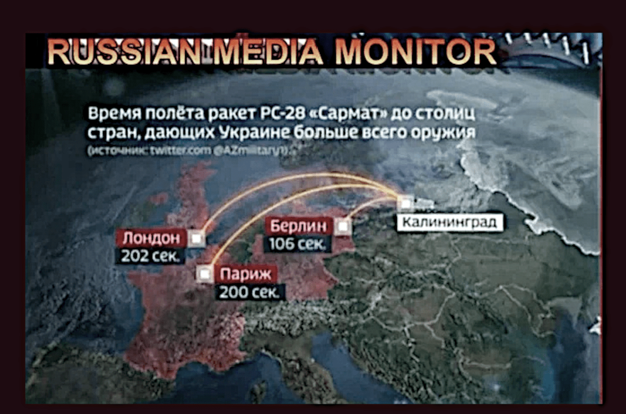 The flight time of the intercontinental ballistic rocket Sarmat to the capitals of the states that supply the Ukronazis with weapons was calculated: