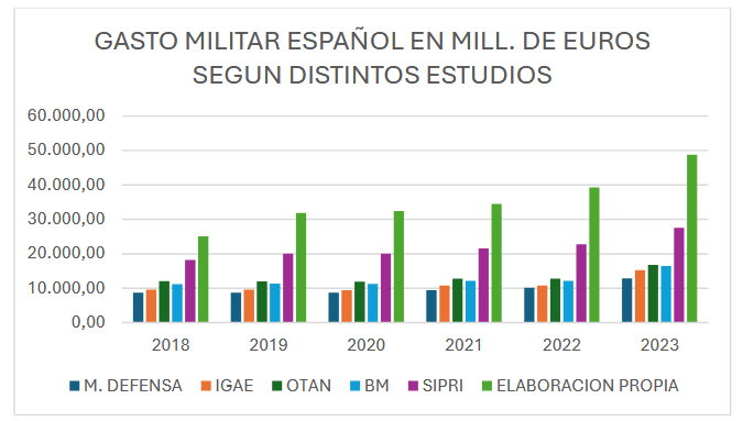 La IGAE, sin embargo, no controla específicamente el gasto militar, ni desagrega el gasto por los distintos programas y partidas que disfrazan gasto militar en otros ministerios ajenos a Defensa, por lo que los datos obtenidos sólo nos darán una aproximación al gasto efectivamente ejecutado durante 2023 y a la cifra total de gasto militar español.
