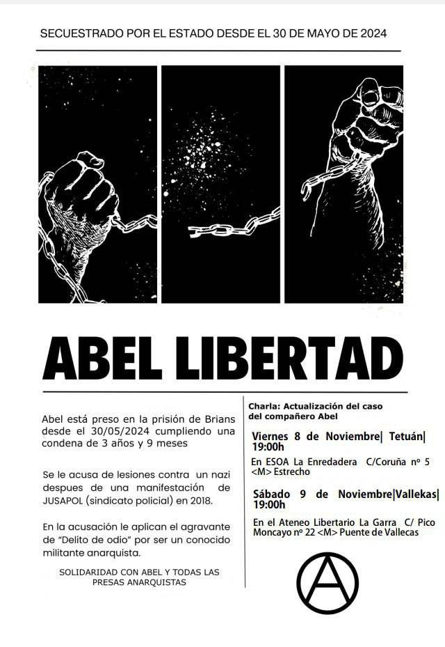 2 thoughts on “A 6 MESES DE RECLUSIÓN DEL COMPAÑERO ANARQUISTA ABEL”