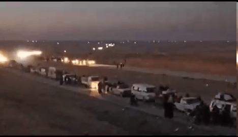 One of the convoys of Kurdish people expelled for ethnic reasons by the Turks from Shehbha begins to move. They are heading to Tabqa