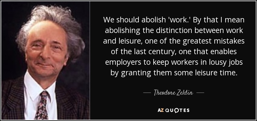 Capitalism enforces the false dichotomy of work and leisure through systemic coercion.