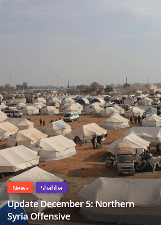 -At least 85,000 Kurdish Internally Displaced People (IDPs) from Shehba have passed into NES through Tabqa and Raqqa. On December 1, Shehba was seized by Turkish-backed Syrian National Army militias which previously drove the bulk of the Kurdish population and all Yazidis and Christians out of the Afrin region in 2018.