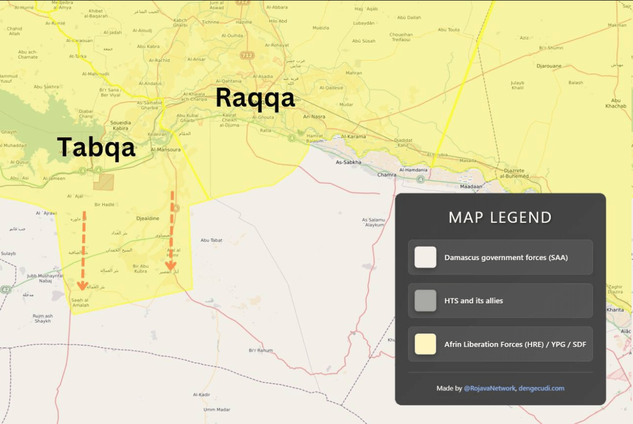 The Syrian Democratic Forces (SDF) led by the Kurdish militia and opponents of Assad have crossed the Euphrates and conquered the Thawra oil field, the town of Rasafa, Safyan and Anbaj expelling Assad’s Syrian Arab Army (SAA) from southern Raqqa.