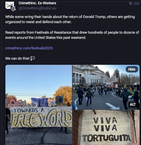info from igd_news and Crimethinc on 22nd Jan 2025 via https://wp.me/pIJl9-FIe https://wp.me/pIJl9-FIe Telegram https://t.me/thefreeonline